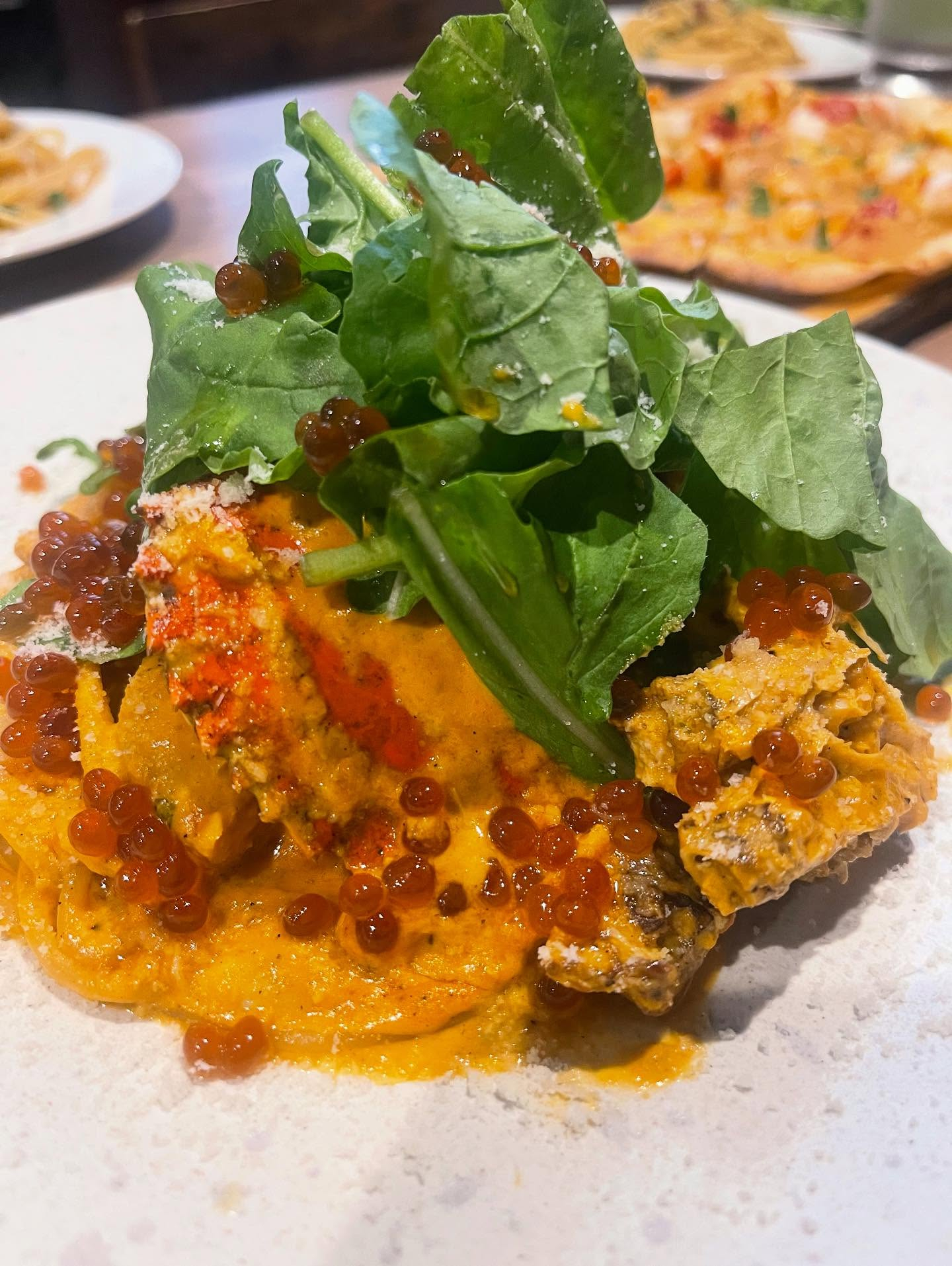 限定7食!!ドウマン蟹とルッコラのトマトクリームパスタ