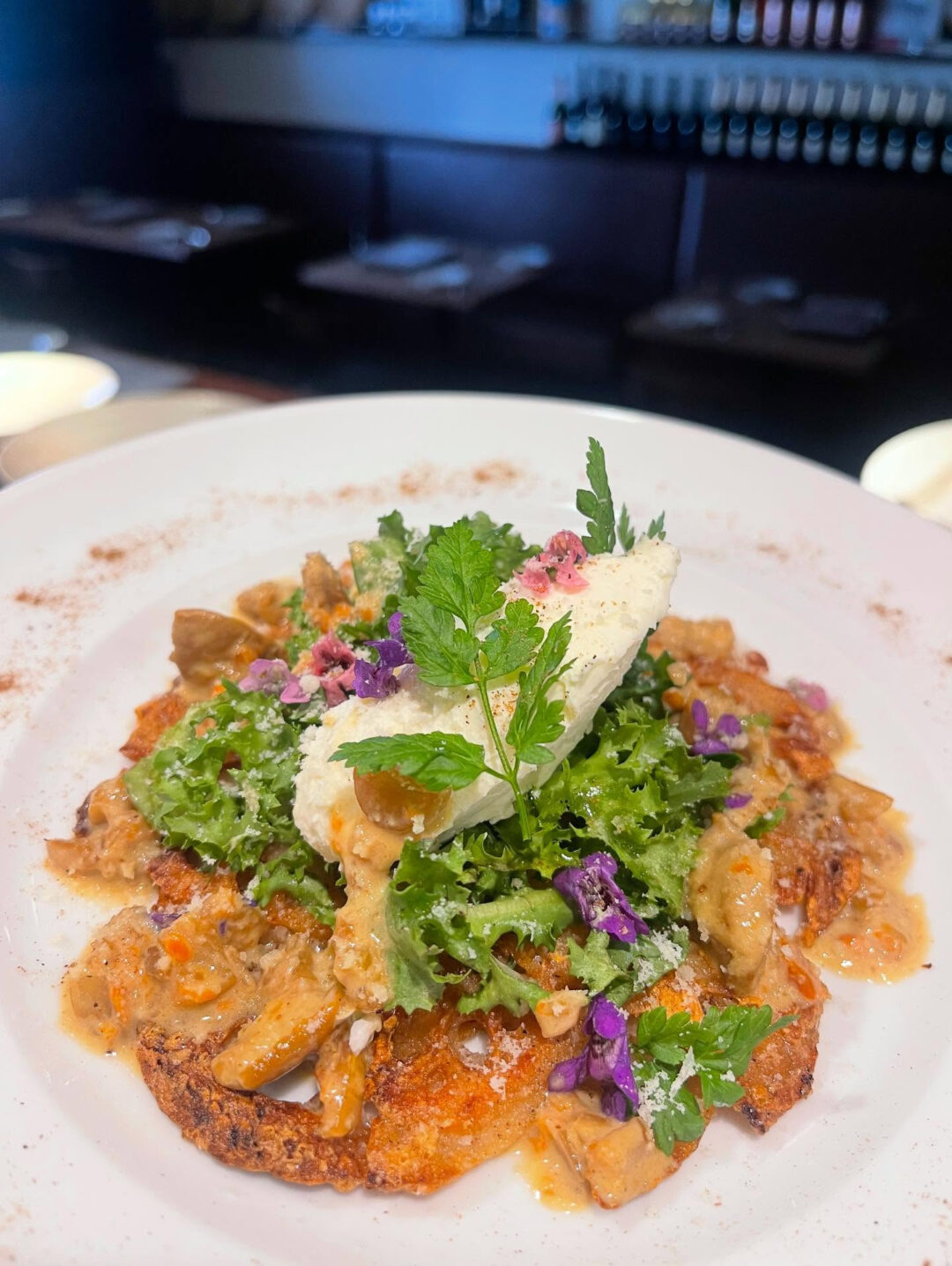 蓮根のガレット 自家製リコッタチーズ 帆立とポルチーニのソー